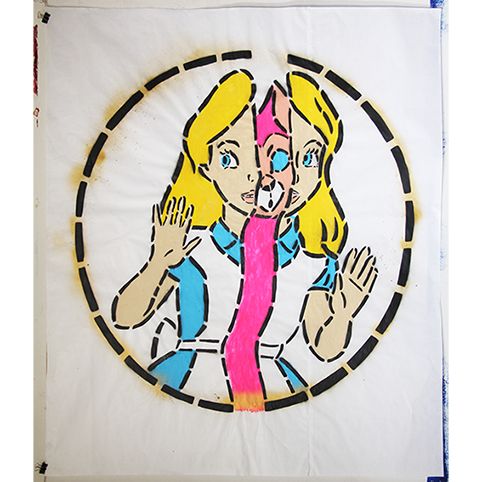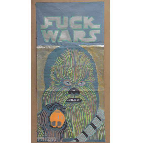 Size 150 x 70 cm. Original handmade paste up, mixed technique, 1/1 signed by Prizmu . Year 2020