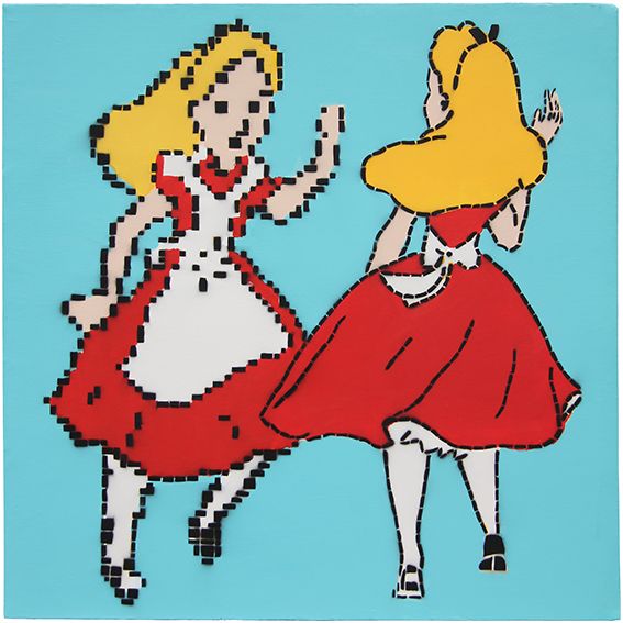 Stencil, silk screen and brush touch-ups, fluor acrylic on canvas. 125x85cm. Year 2023