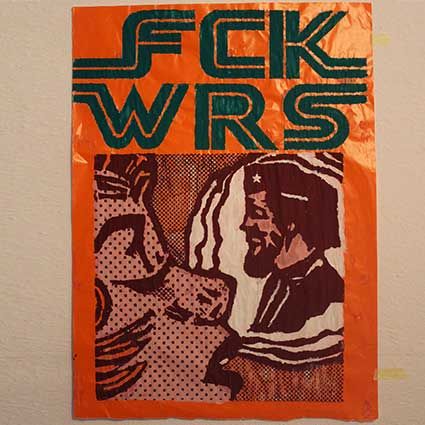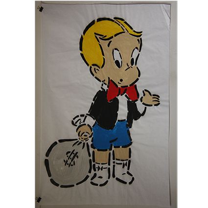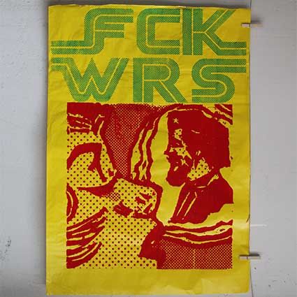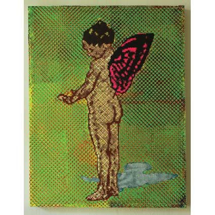 Stencil, silk screen and brush touch-ups, fluor acrylic on Paper. 180x70cm. Year. 2024. For more info